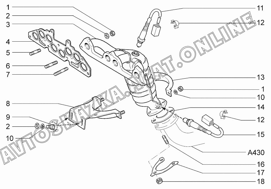 Труба приемная с нейтрализатором ВАЗ 2170 (21701-00, 21702-00, 21703-01, 21703-02, 21703-03 - "Priora" (седан))