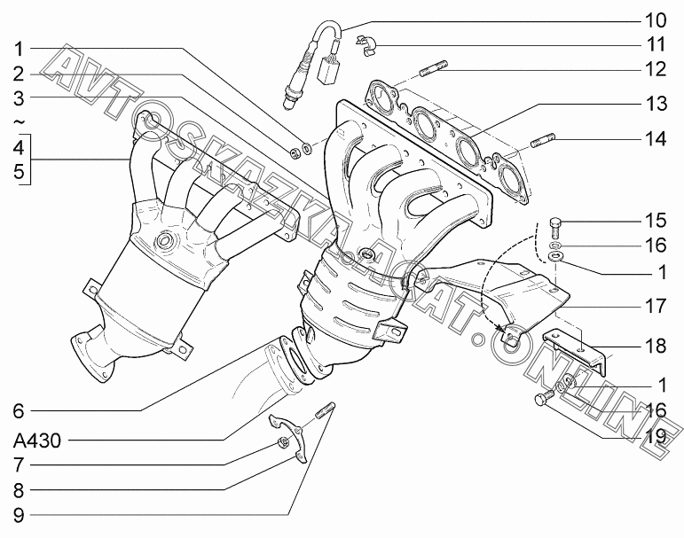 Труба приемная с нейтрализатором (с электронной педалью акселератора) ВАЗ 2170 (21701-00, 21702-00, 21703-01, 21703-02, 21703-03 - "Priora" (седан))