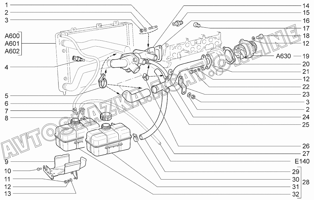 Трубопроводы и бачок расширительный ВАЗ 2170 (21701-00, 21702-00, 21703-01, 21703-02, 21703-03 - "Priora" (седан))