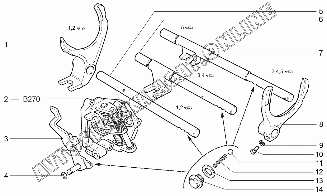 Механизм выбора и переключения передач ВАЗ 2170 (21701-00, 21702-00, 21703-01, 21703-02, 21703-03 - "Priora" (седан))