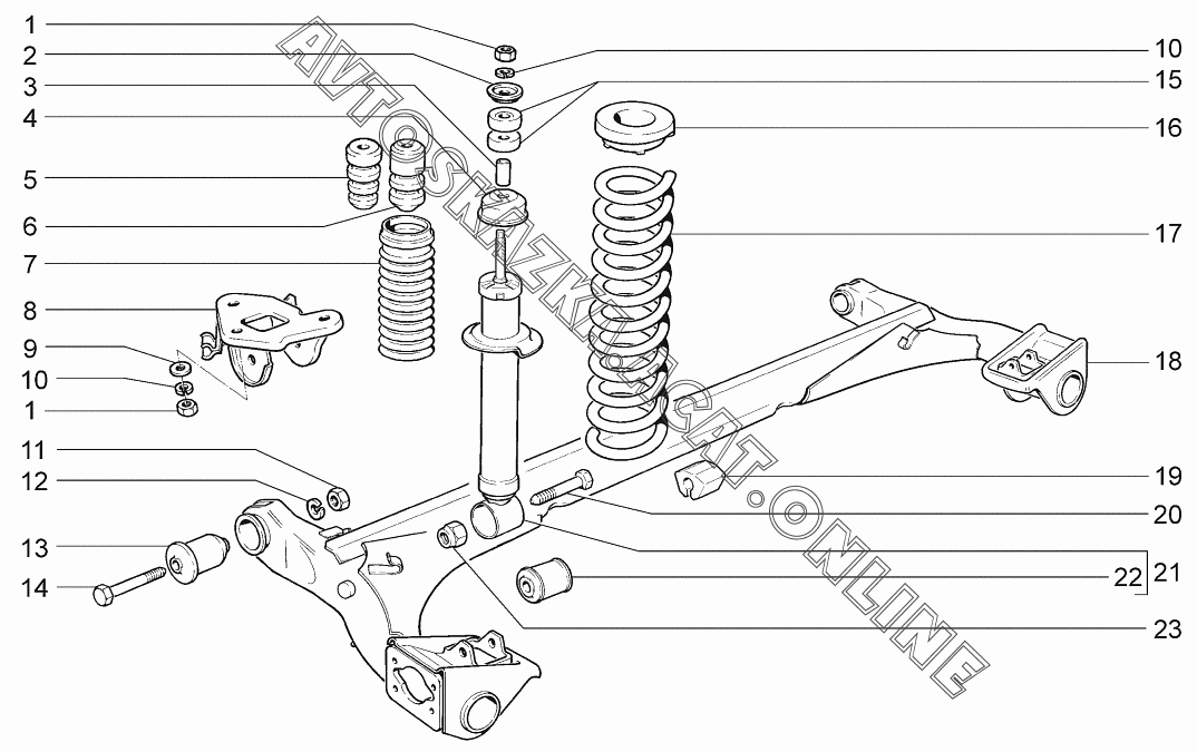 Подвеска задняя ВАЗ 2170 (21701-00, 21702-00, 21703-01, 21703-02, 21703-03 - "Priora" (седан))