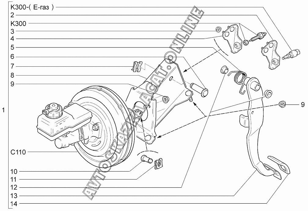 Педаль тормоза (климатическая установка) ВАЗ 2170 (21701-00, 21702-00, 21703-01, 21703-02, 21703-03 - "Priora" (седан))
