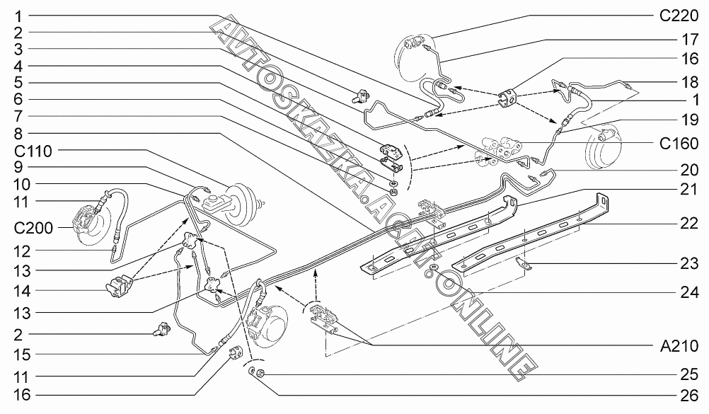 Привод гидротормозов ВАЗ 2170 (21701-00, 21702-00, 21703-01, 21703-02, 21703-03 - "Priora" (седан))