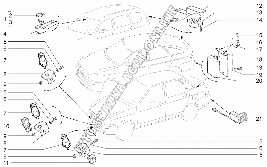 Датчики и система безопасной парковки ВАЗ 2170 (21701-00, 21702-00, 21703-01, 21703-02, 21703-03 - "Priora" (седан))
