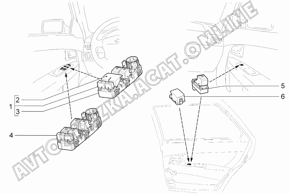 Модуль двери водителя и переключатели стеклоподъемников ВАЗ 2170 (21701-00, 21702-00, 21703-01, 21703-02, 21703-03 - "Priora" (седан))