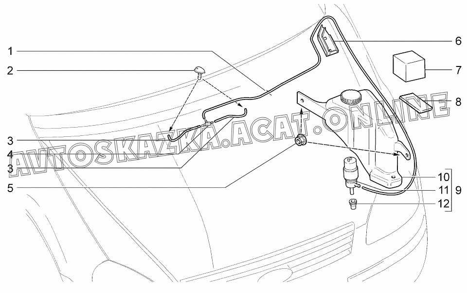 | Название детали: | Насос омывателя с бачком в сборе |
