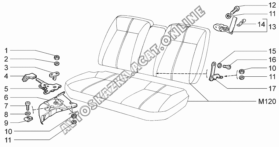 Механизм установки заднего сиденья ВАЗ 2170 (21701-00, 21702-00, 21703-01, 21703-02, 21703-03 - "Priora" (седан))
