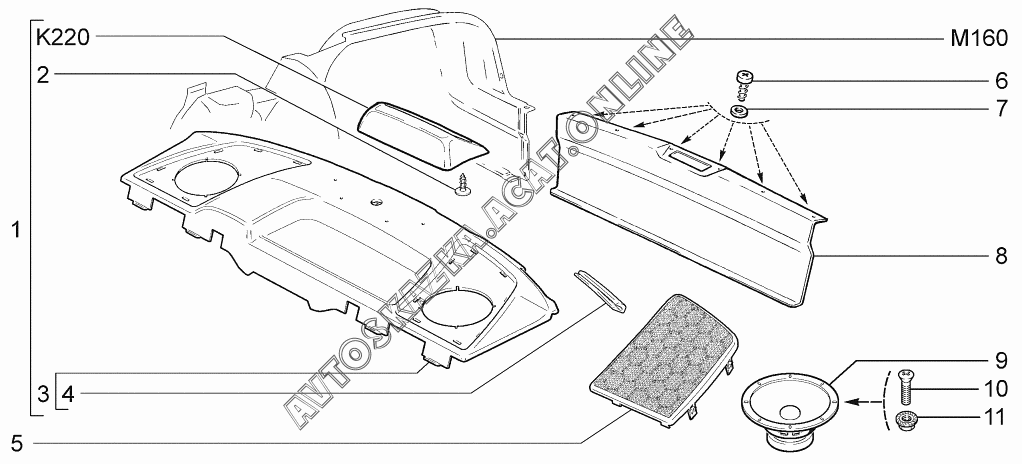 | Название детали: | Полка багажника с прокладкой и буфером в сборе |