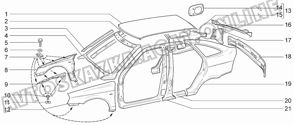 Панели кузова ВАЗ 2170 (21701-00, 21702-00, 21703-01, 21703-02, 21703-03 - "Priora" (седан))
