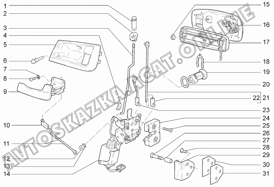 Замки и ручки передних дверей ВАЗ 2170 (21701-00, 21702-00, 21703-01, 21703-02, 21703-03 - "Priora" (седан))