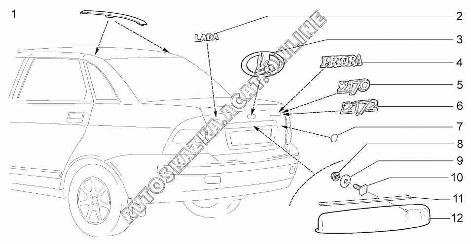 Накладки и надписи декоративные ВАЗ 2170 (21701-00, 21702-00, 21703-01, 21703-02, 21703-03 - "Priora" (седан))