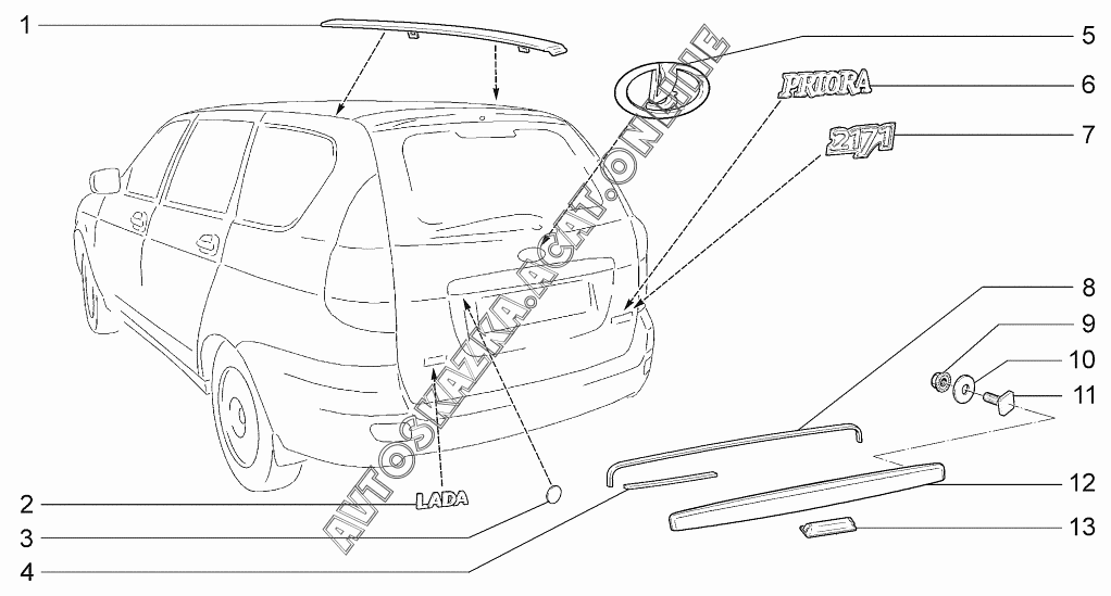 Накладки и надписи декоративные ВАЗ 2170 (21701-00, 21702-00, 21703-01, 21703-02, 21703-03 - "Priora" (седан))