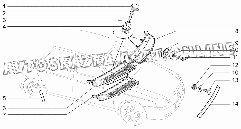 Накладки облицовочные ВАЗ 2170 (21701-00, 21702-00, 21703-01, 21703-02, 21703-03 - "Priora" (седан))