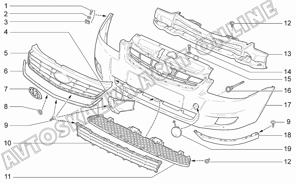 Бампер передний (30,32,33,39,129) ВАЗ 2170 (21701-00, 21702-00, 21703-01, 21703-02, 21703-03 - "Priora" (седан))