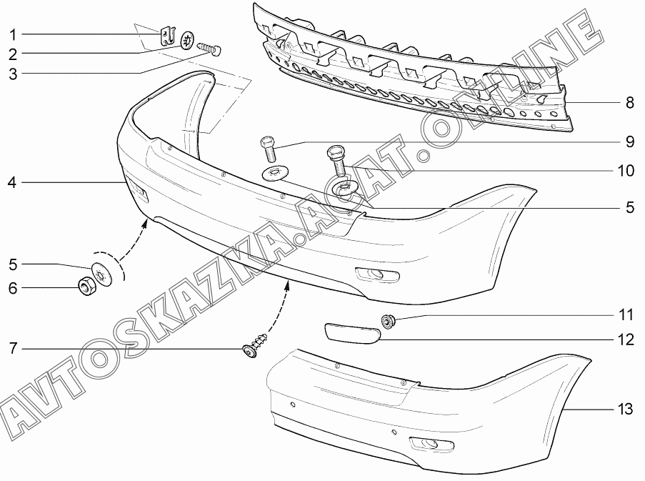 Бампер задний ВАЗ 2170 (21701-00, 21702-00, 21703-01, 21703-02, 21703-03 - "Priora" (седан))