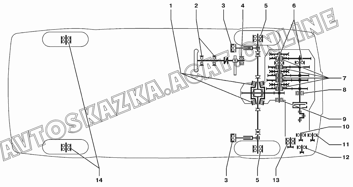 Схема расположения подшипников качения ВАЗ 2170 (21701-00, 21702-00, 21703-01, 21703-02, 21703-03 - "Priora" (седан))