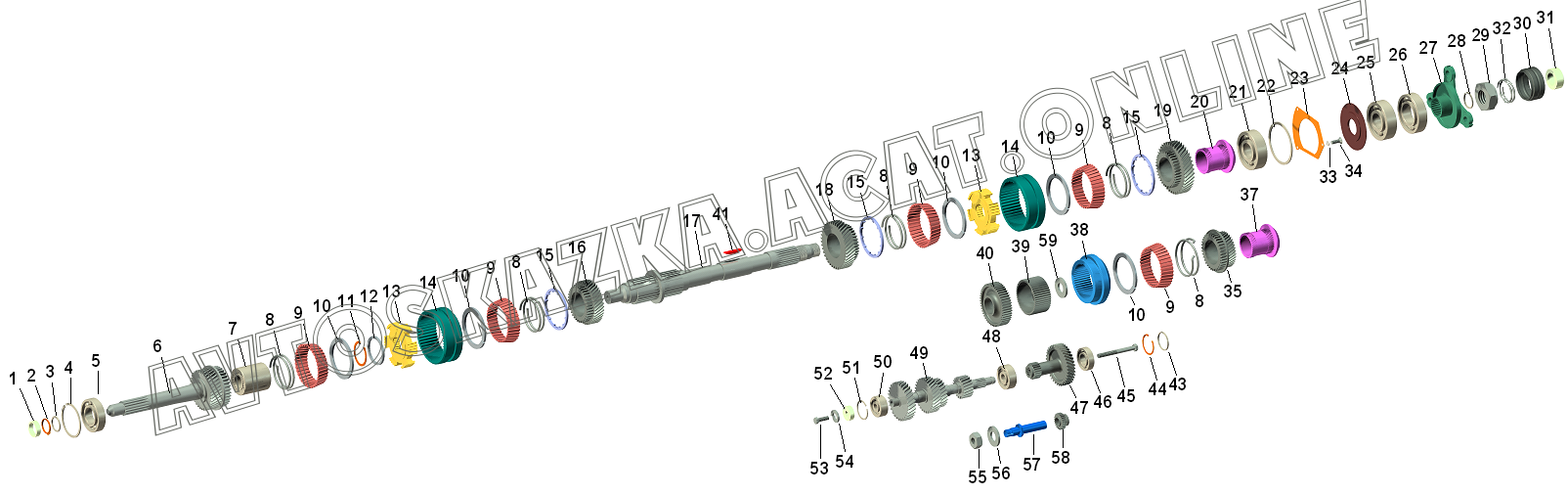 Валы и шестерни коробки передач ВАЗ 2121 (21213, 21214, 21214-10, 21214-20, 21215-10, 21216, 21217, 212146, 212146-10)