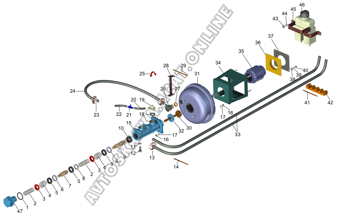Элементы привода тормозов 21213, 21214, 21214-10, 21214-20, 21215-10, 21217, 2131-01, 2131-41