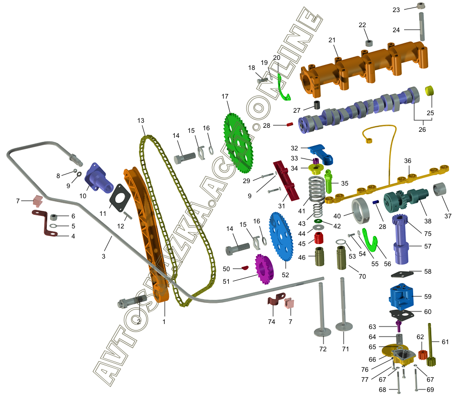 Привод распределительного вала, газораспределительный механизм и масляный насос 21213, 21214, 21214-10, 21214-20, 21216, 21217, 212146, 212146-10, 2131-01, 2131-41 ВАЗ 2131 (2131-01, 2131-41)