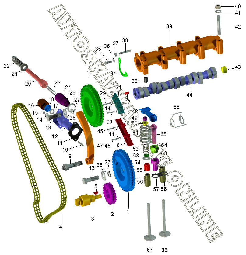 Привод распределительного вала, газораспределительный механизм и масляный насос 21213, 21214, 21214-10, 21216, 21217, 212146, 212146-10, 2131-01 ВАЗ 2131 (2131-01, 2131-41)