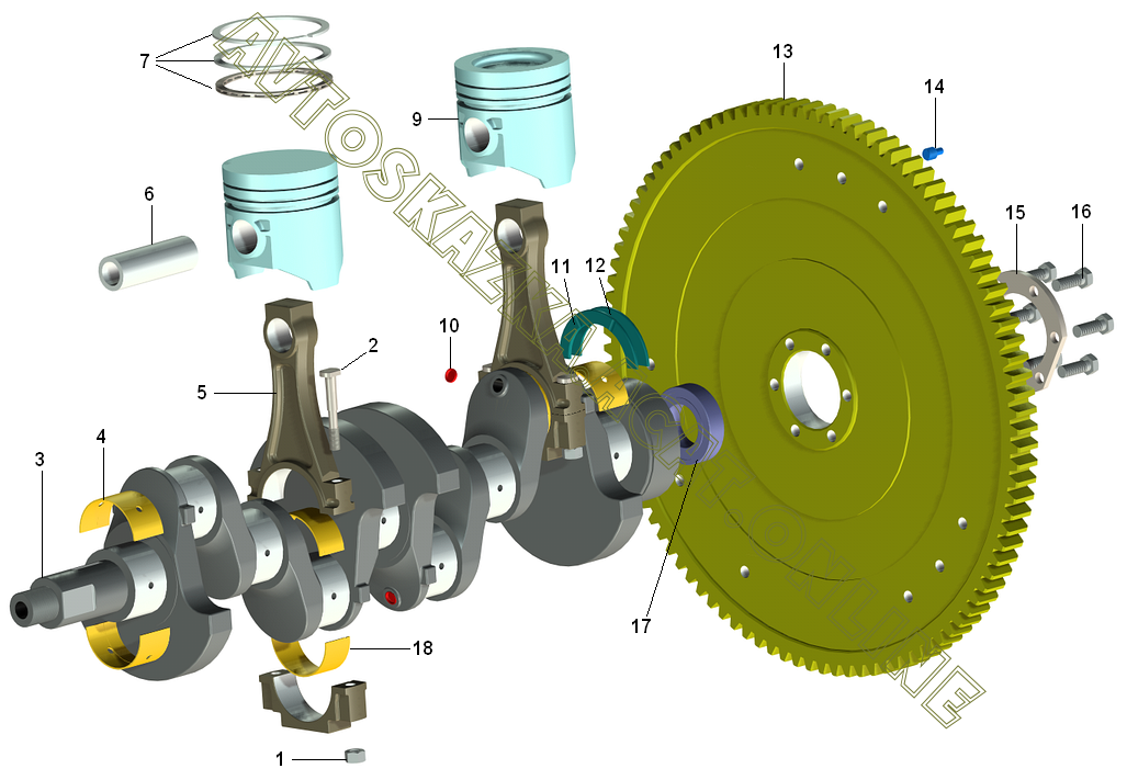 Вал коленчатый, маховик, шатуны и поршни 21217 ВАЗ 2131 (2131-01, 2131-41)