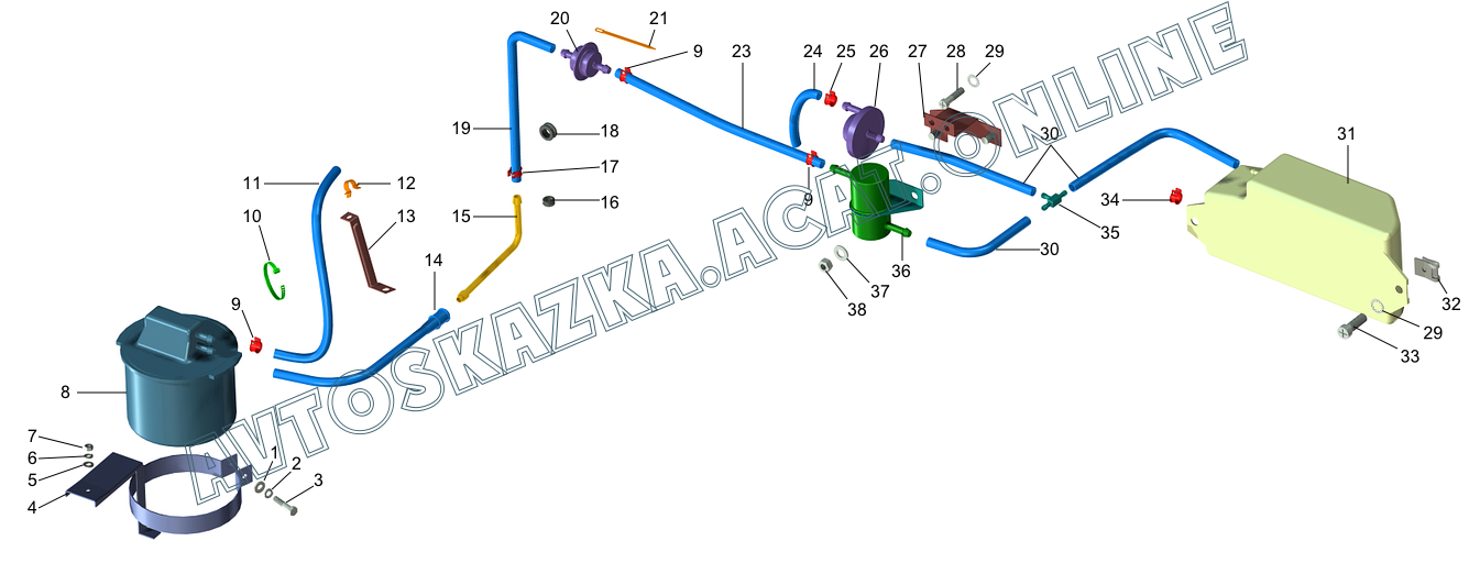 Система улавливания паров бензина 21214, 21214-10, 21214-20, 212146, 212146-10 ВАЗ 2131 (2131-01, 2131-41)