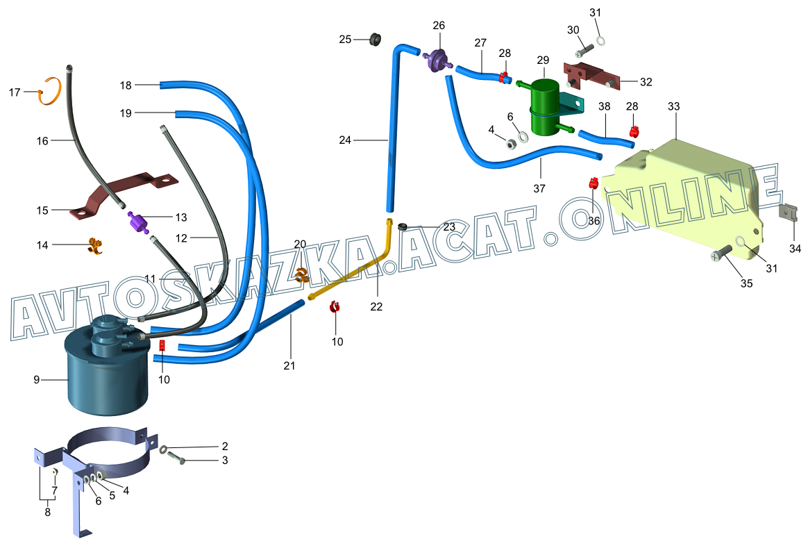 Система улавливания паров бензина 21217 ВАЗ 2131 (2131-01, 2131-41)