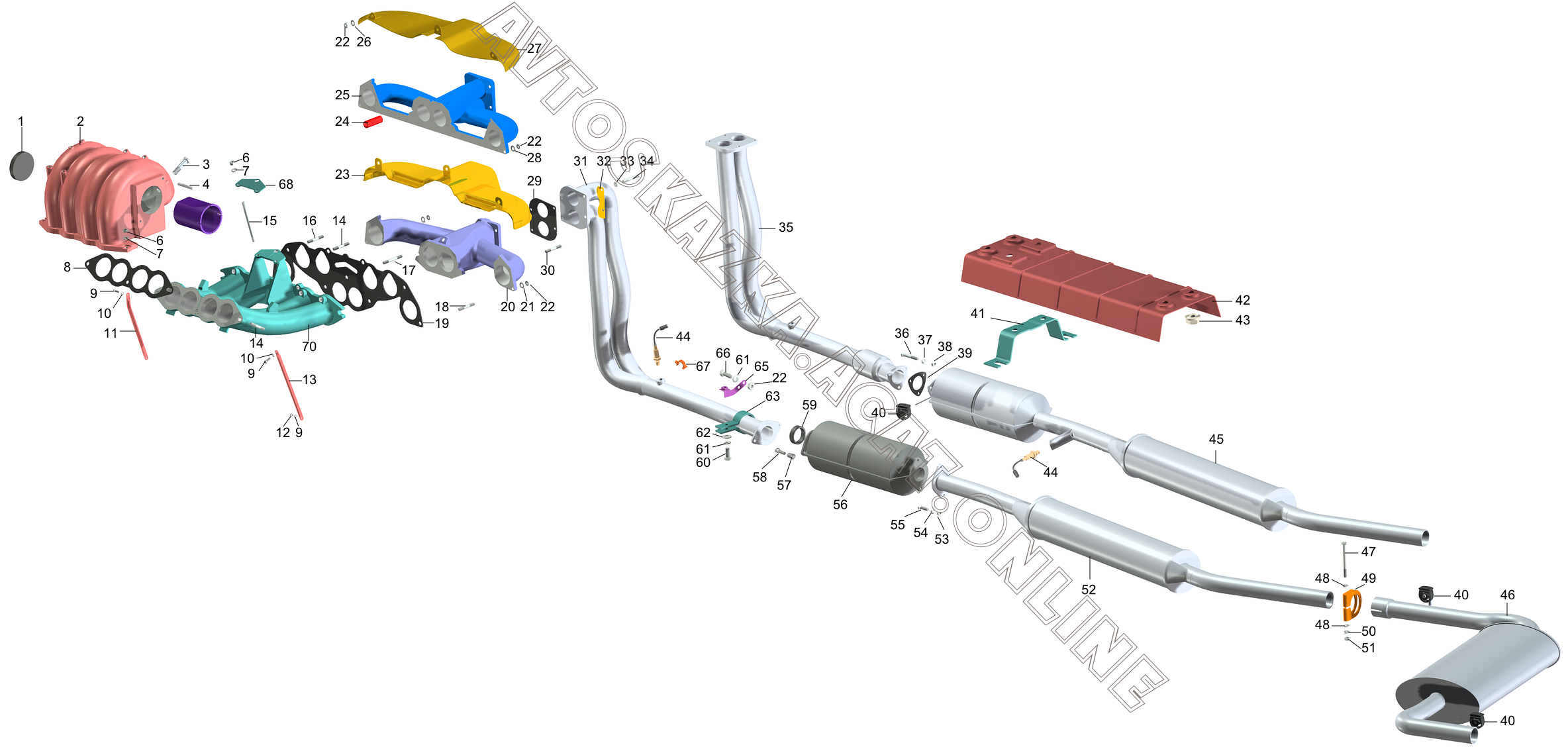 Труба впускная, ресивер, коллектор выпускной, трубы выхлопные, глушители 21214, 21214-10, 21214-20, 21215-10, 212146, 212146-10, 2131-41 ВАЗ 2131 (2131-01, 2131-41)