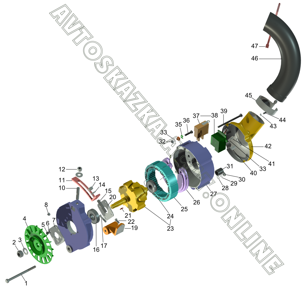Генератор с арматурой 21213, 21216, 21217, 2131-01 ВАЗ 2131 (2131-01, 2131-41)