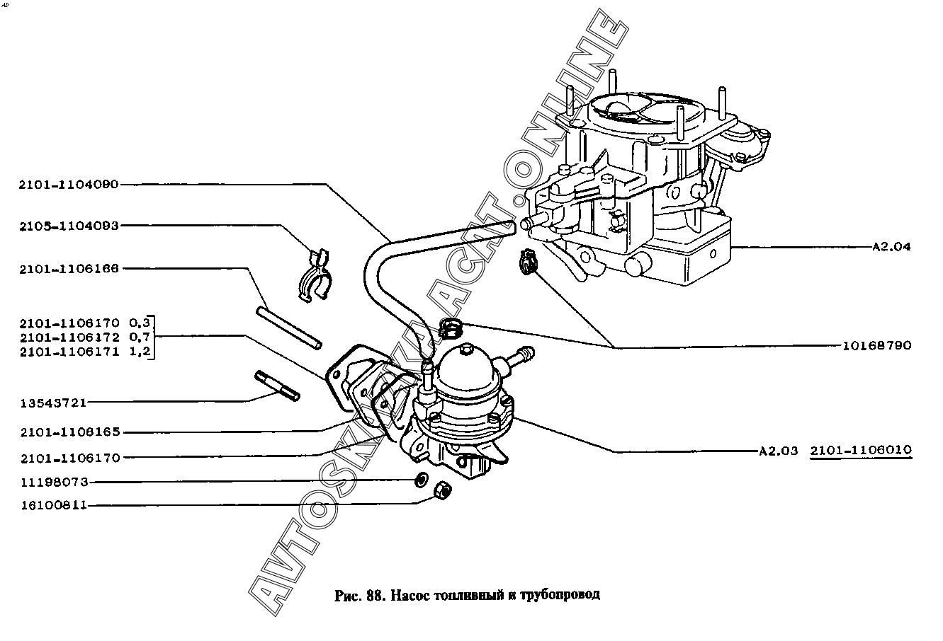 Насос топливный и трубопровод ВАЗ 2104 (21043, 21046, 21047)