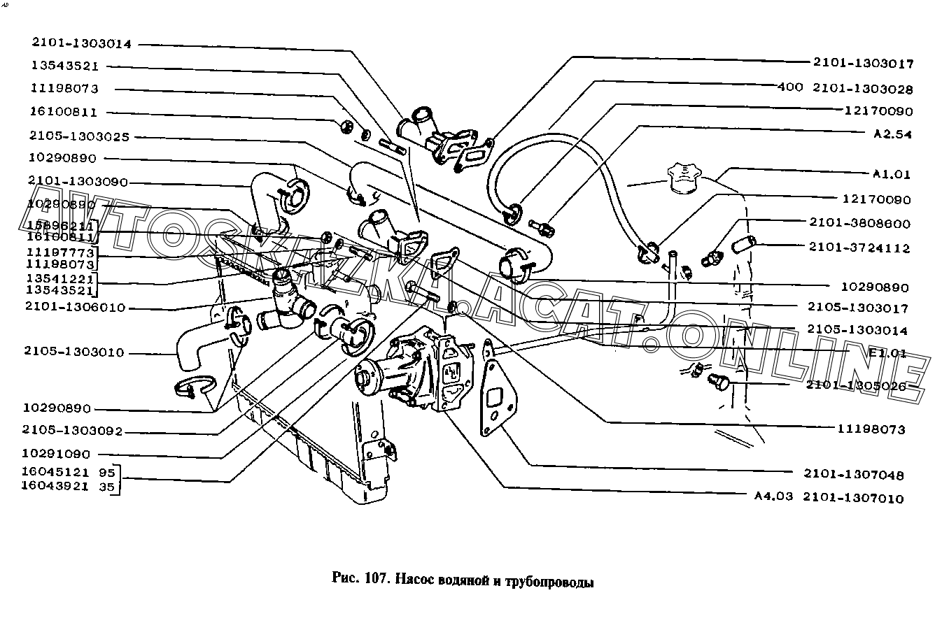 Насос водяной и трубпроводы ВАЗ 2104 (21043, 21046, 21047)