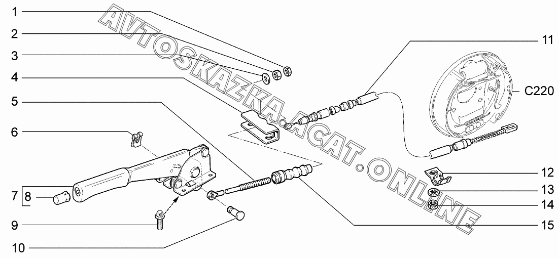 Привод стояночного тормоза ВАЗ 2114 (21144-20, 21144-22, 21144-30, 21144-32)