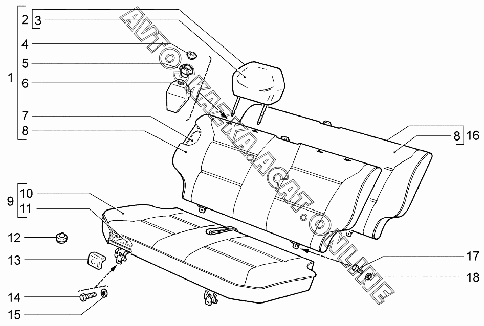 Сиденье заднее ВАЗ 2114 (21144-20, 21144-22, 21144-30, 21144-32)