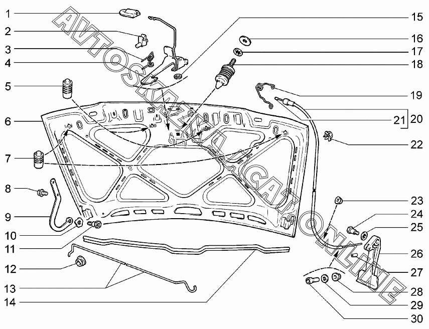 Капот ВАЗ 2114 (21144-20, 21144-22, 21144-30, 21144-32)
