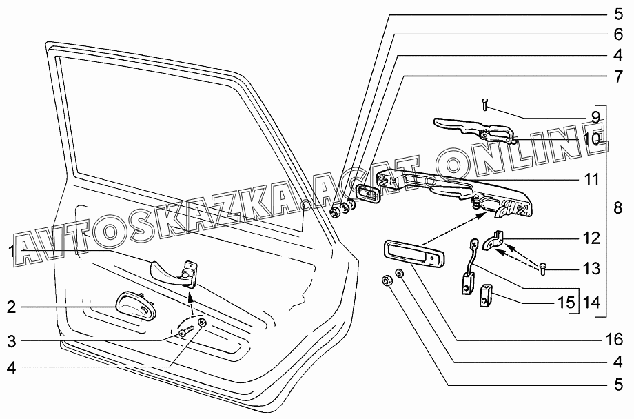 Ручки задних дверей ВАЗ 2114 (21144-20, 21144-22, 21144-30, 21144-32)
