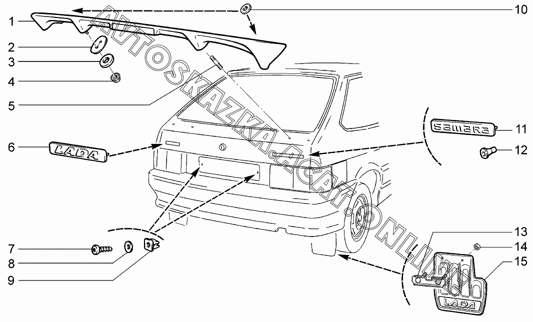 Спойлер и накладки декоративные ВАЗ 2114 (21144-20, 21144-22, 21144-30, 21144-32)