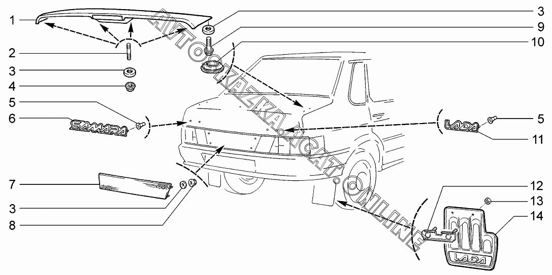 Спойлер и накладки декоративные ВАЗ 2114 (21144-20, 21144-22, 21144-30, 21144-32)