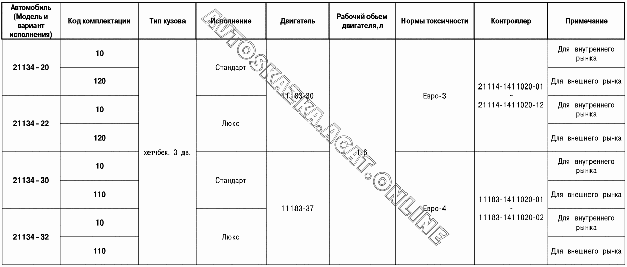 Модификации и комплектации автомобилей ВАЗ 2114 (21144-20, 21144-22, 21144-30, 21144-32)