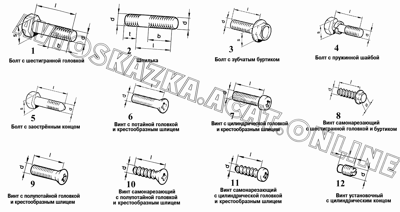 | Название детали: | Болт с шестигранной головкой (d=М6; l=12; b=12; s=10) |