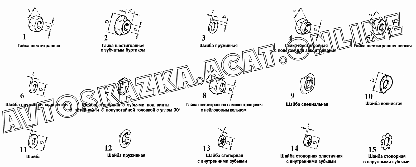 | Название детали: | Гайка шестигранная с зубчатым буртиком (d=M6; D=16,7; s=10) |