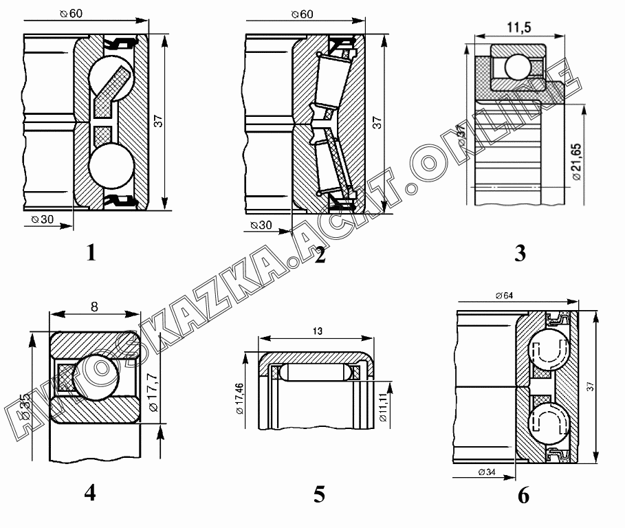 Подшипники ВАЗ 2114 (21144-20, 21144-22, 21144-30, 21144-32)