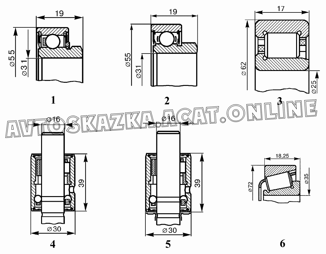 | Название детали: | Подшипник качения (D=55; d=31; B=19) |