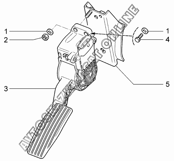 Педаль привода акселератора ВАЗ 2115 (21154-20, 21154-22, 21154-30, 21154-32)