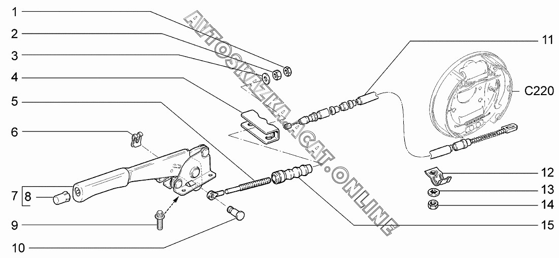 Привод стояночного тормоза ВАЗ 2115 (21154-20, 21154-22, 21154-30, 21154-32)