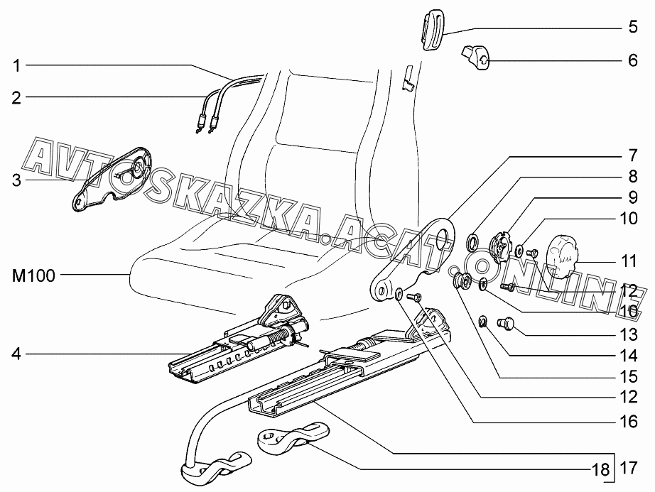 Механизм установки передних сидений ВАЗ 2115 (21154-20, 21154-22, 21154-30, 21154-32)