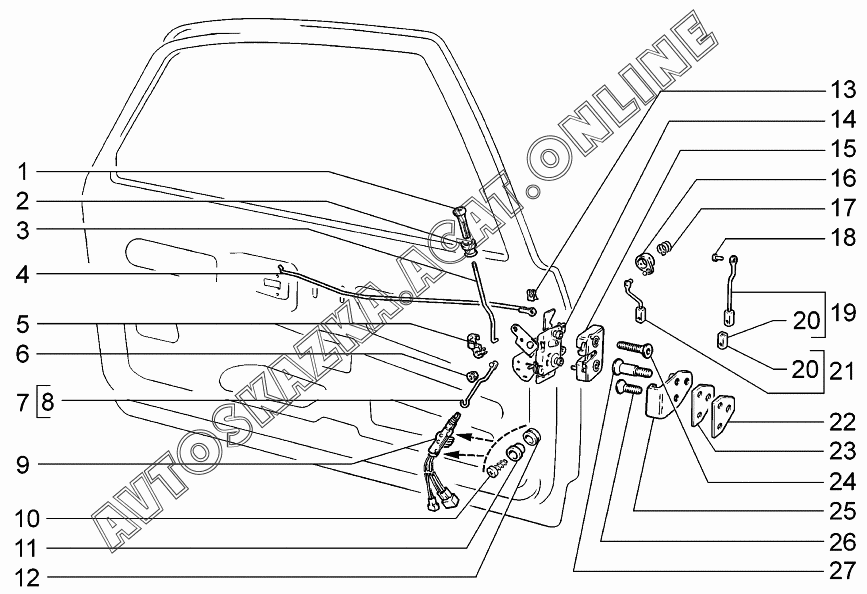 Замки передних дверей ВАЗ 2115 (21154-20, 21154-22, 21154-30, 21154-32)