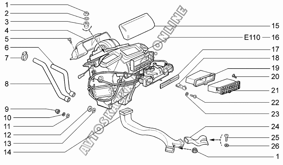 Система вентиляции и отопления ВАЗ 2115 (21154-20, 21154-22, 21154-30, 21154-32)