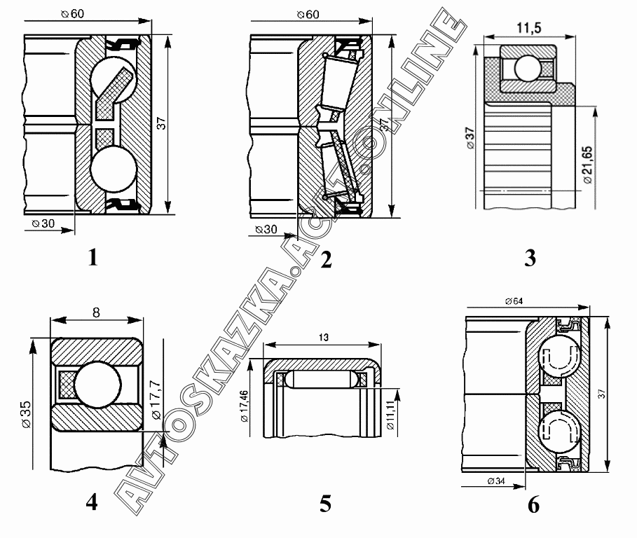 | Название детали: | Подшипник качения (D=60; d=30; B=37) |
