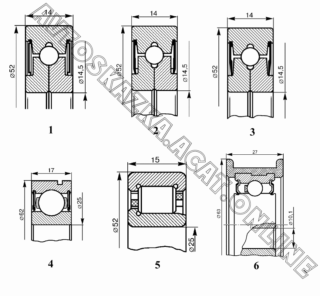 | Название детали: | Подшипник качения (D=52; d=14,5; B=14) |