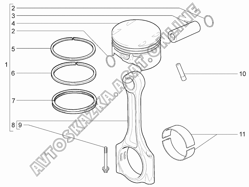 Шатуны и поршни ВАЗ 2171 (21713-01, 21713-02, 21713-03 - "Priora" (универсал))